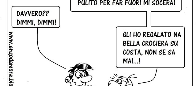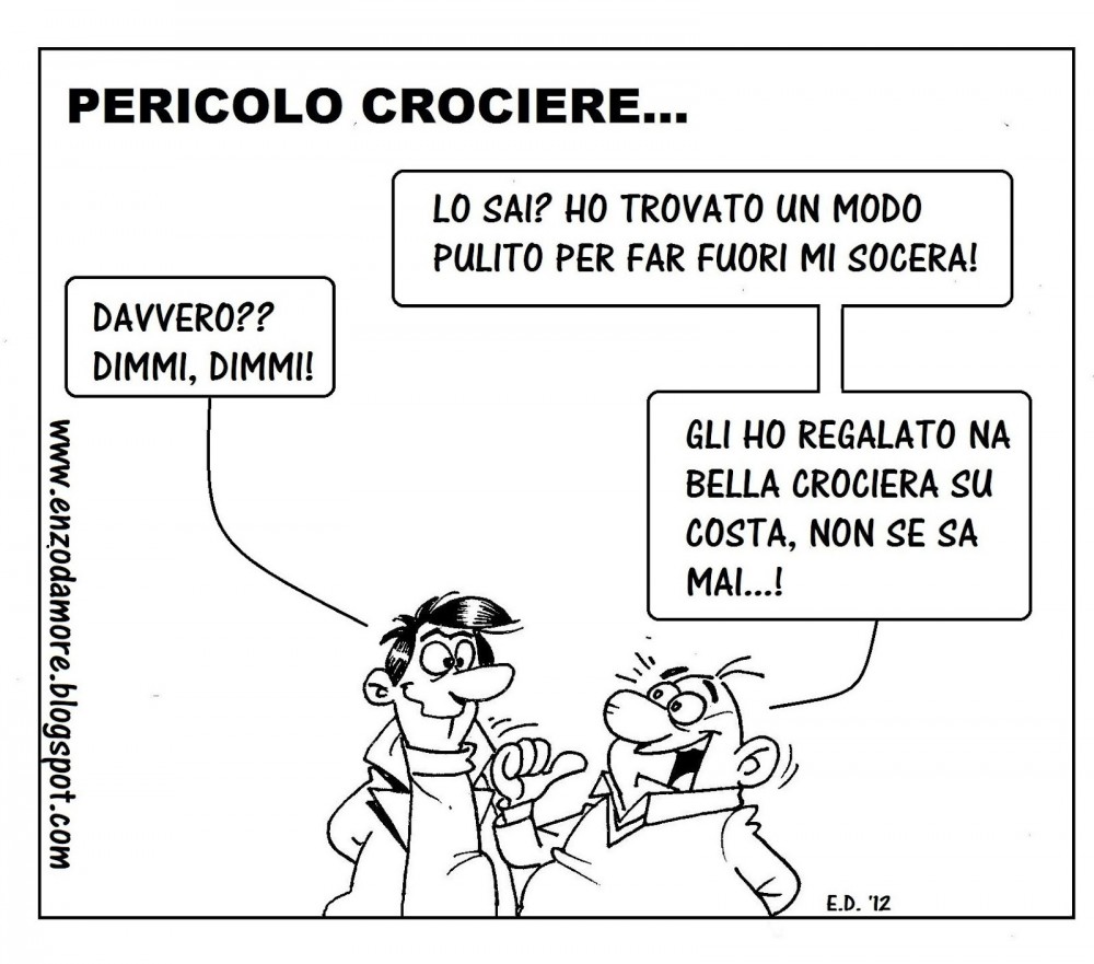 Per le crociere è un momento critico. I due incidenti in un mese e mezzo rappresentano un danno d’immagine notevole che già si ripercuote nelle agenzie di viaggio. Il vignettista Enzo D’Amore propone ai lettori una satira a riguardo dal titolo: ” Pericolo crociere…….”