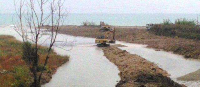 Questi lavori di “ripuilitura” consistono nella distruzione con ruspe di tutta la vegetazione presente alla foce e lungo gli argini del Fiume. Tali interventi vengono ripetuti frequentemente con la motivazione del rischio legato ad eventuali piene che potrebbero portare materiale verso la foce ostruendola e creando così il rischio di esondazioni.