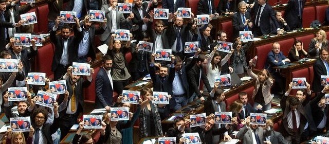 “Basta. Non ci stiamo. E abbiamo protestato in aula in modo chirurgico, su temi specifici e concreti come l’Irap per i piccolissimi imprenditori, i favori ai signori del gioco d’azzardo e la mortificazione della nuova filiera del pellet”. Lo fanno notare i deputati M5S in merito alla movimentata giornata in aula sulla legge di Stabilità. “Si è votato alla cieca, in fretta e furia, nottetempo e su testi sbagliati. Con i servizi studi delle Camere che mettono in dubbio tutte le coperture. In questi giorni, in queste ore – aggiungono – abbiamo visto cose inaccettabili, cose inenarrabili, cose mai viste nella storia parlamentare recente”. “Il governo calpesta la dignità del Parlamento per aumentare le tasse di almeno 23-25 miliardi tra stangate effettive e tagliole quasi inevitabili nel prossimo futuro. Il M5S ha proposto modifiche costruttive per il lavoro e gli investimenti, ma Renzi e i suoi prediligono mance e marchette a favore delle solite clientele e delle lobby che infestano i palazzi della politica”, chiude il Gruppo del MoVimento 5 Stelle Camera.