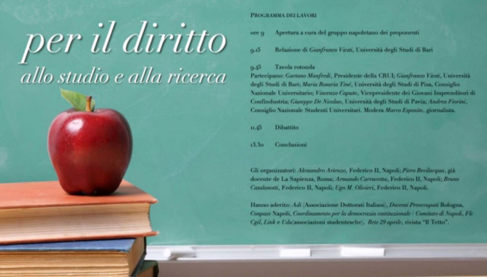 Oggi l’accesso all’istruzione universitaria italiana è il più costoso d’Europa, dopo quello di UK e Olanda; inoltre da noi il diritto allo studio è stato di fatto smantellato: solo il 7% degli studenti riceve una borsa di studio a fronte del 27% in Francia e del 30% in Germania.