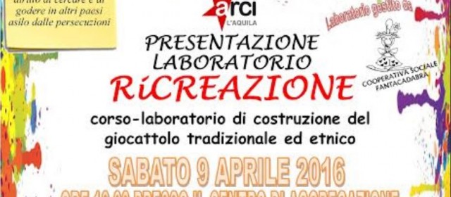 Il Comitato Territoriale Arci L’Aquila, ente gestore del progetto SPRAR di L’Aquila – Castel del Monte, al fine di realizzare attività di inclusione sociale e di integrazione tra i richiedenti asilo ed i rifugiati beneficiari del progetto ed il paese di Castel del Monte, e nel tentativo di apportare un valore aggiunto alle attività presenti in paese, presenta il laboratorio “RiCREAZIONE: corso-laboratorio di costruzione del giocattolo tradizionale” che verrà realizzato dalla Cooperativa Sociale FANTACADABRA in collaborazione con il Comune di Castel del Monte la Cooperativa VerdeAqua Nuovi Orizzonti.