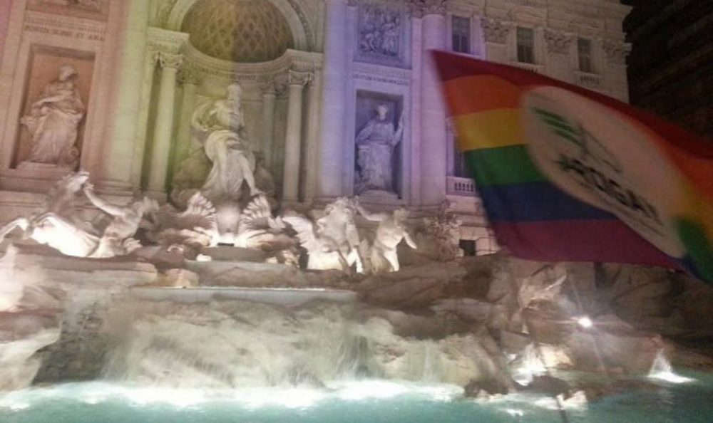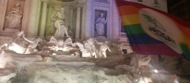 Una folla colorata ha accolto l’illuminazione arcobaleno della Fontana di Trevi, nel giorno in cui le unioni civili diventano legge dello Stato. Madrina della serata dei diritti il ministro Maria Elena Boschi, presente in piazza al fianco del candidato Pd al Campidoglio Roberto Giachetti.