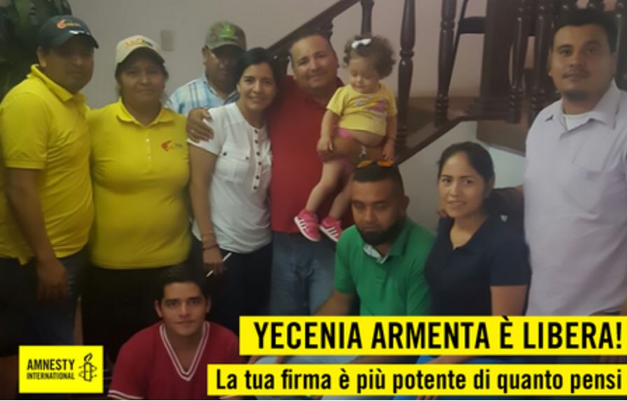 Anche in Italia, dal 2015, nell’ambito della campagna “Stop alla tortura”, Amnesty International ha raccolto firme per il rilascio di Yecenia Armenta Graciano. Il 4 maggio 2016, le oltre 45 mila firme raccolte erano state inviate via email al capo della procura di Sinaloa con la richiesta urgente di pronunciarsi per il proscioglimento di Yecenia e una copia delle stesse era stata fatta pervenire all’ambasciata del Messico in Italia.