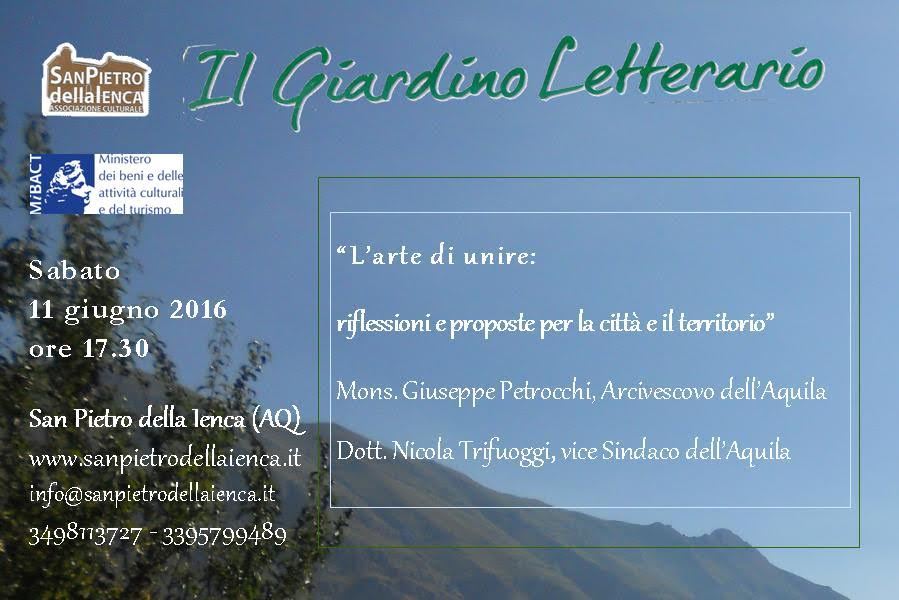 Nell’ambito dell’articolato programma di attività ed eventi organizzato da oltre quindici anni dalla scrivente Associazione Culturale nel territorio comunale dell’Aquila in materia di promozione sociale, culturale e turistico-religiosa, viene proposta la 3° Edizione della Rassegna Culturale “Il Giardino Letterario” che si svolgerà nel Borgo di San Pietro della Ienca come un salotto culturale all’aperto immerso nella natura.