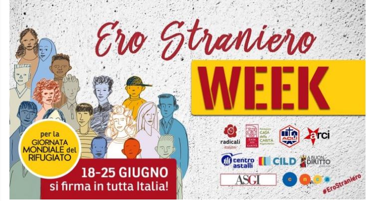 Dal 18 al 25 giugno, in occasione della Giornata mondiale del rifugiato, il comitato promotore della campagna “Ero straniero – L’umanità che fa bene” lancia in tutta Italia la “Ero straniero Week”: una settimana di raccolta firme straordinaria sulla legge di iniziativa popolare per cambiare le politiche sull’immigrazione e superare la legge Bossi-Fini investendo su lavoro e inclusione.