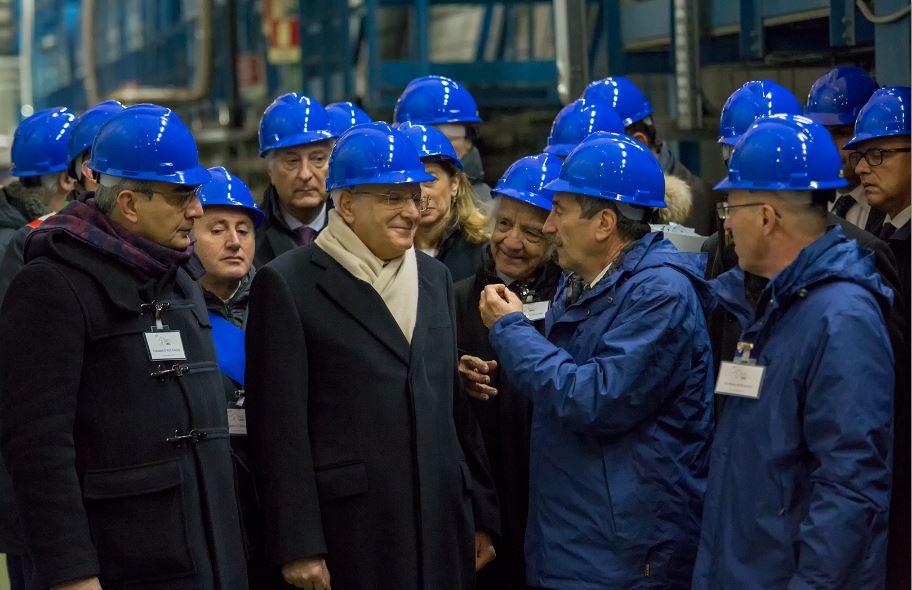 Il Presidente Mattarella è stato accolto, presso la Sala C dei Laboratori sotterranei, dal Presidente dell’INFN Ferroni, dal Direttore dei LNGS Stefano Ragazzi, dal Sindaco dell’Aquila Pierluigi Biondi, dal Presidente della Regione Abruzzo Luciano D’Alfonso e dal Presidente della Provincia dell’Aquila Angelo Caruso, ed è stato accompagnato quindi nella visita delle tre grandi sale sperimentali anche da una delegazione della Giunta Esecutiva dell’INFN e dal professor Antonino Zichichi. In particolare, il Presidente della Repubblica ha visitato gli esperimenti Borexino, GERDA, CUORE e XENON1T, le cui attività di ricerca, che riguardano la fisica del neutrino nel caso dei primi tre, e la ricerca diretta di materia oscura, nel caso di XENON1T, sono state illustrate dai coordinatori delle collaborazioni internazionali impegnate negli esperimenti.
