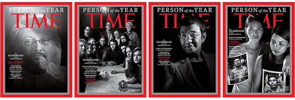 “Per avere assunto grandi rischi nel perseguire verita’ piu’ grandi, per l’imperfetta ma essenziale ricerca dei fatti, per aver fatto sentire la propria voce e aver detto la propria – si legge nella motivazione della scelta – i ‘guardiani’ Jamal Khashoggi, la ‘Capital Gazette’, Maria Ressa, Wa Lone e Kyaw Soe Oo sono persona dell’anno di ‘Time'”.