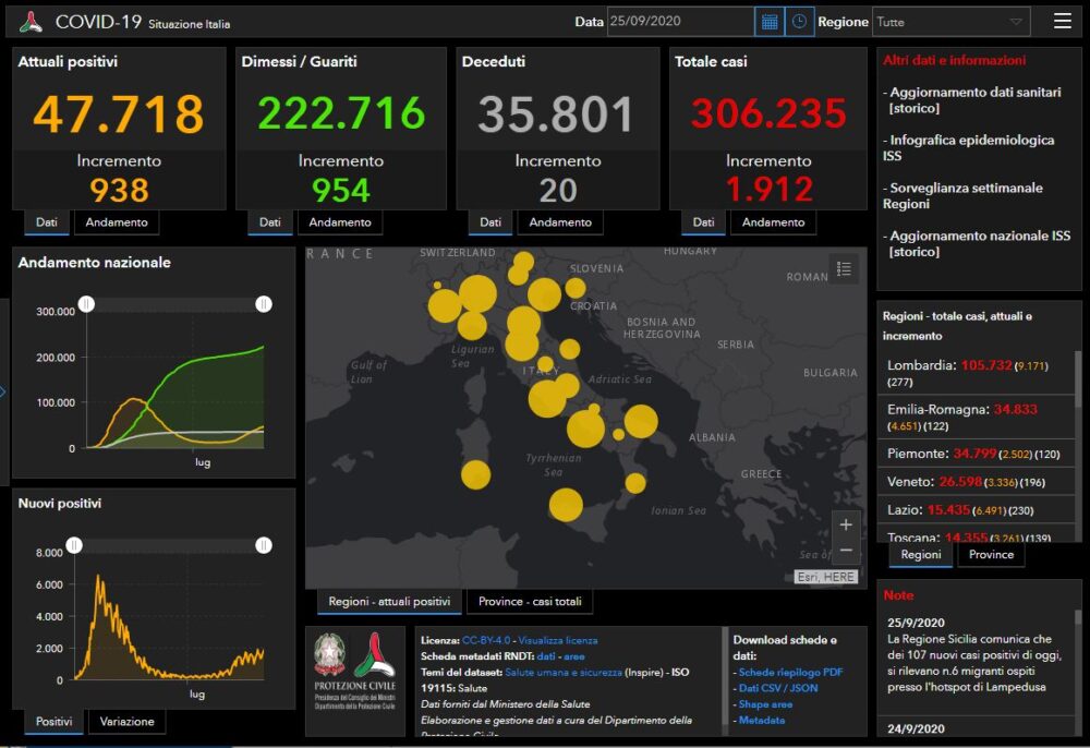 I dati dei positivi Regione per Regione: