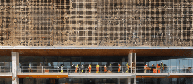 Sul fronte esterno, la facciata sarà rivestita parzialmente con lamiera bronzata traforata e retroilluminata, un motivo ispirato ai colori bianco e rosa della Basilica di Santa Maria di Collemaggio. L’intervento richiamerà l’identità storica del contesto urbano, ponendo in dialogo il terminal con Porta Bazzano e la basilica stessa.
