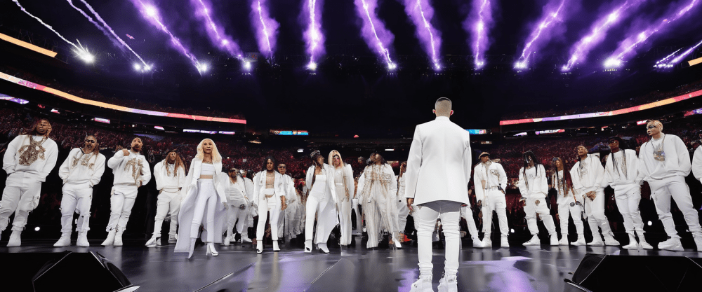 Sul palco del Levi’s Stadium di Santa Clara, in California, Bad Bunny ha invece scritto una pagina di storia, diventando il primo artista ad esibirsi principalmente in spagnolo durante l’intervallo del Super Bowl. Vestito interamente di bianco con il proprio cognome stampato sulla maglia, ha aperto lo show con Tití Me Preguntó. Nel corso dei circa tredici minuti di esibizione si sono avvicendati cameo di Pedro Pascal, Jessica Alba, Cardi B e Karol G, mentre Lady Gaga – ospite a sorpresa – ha proposto Die with a Smile in versione salsa, seguita da Ricky Martin. A conclusione dello spettacolo, Bad Bunny ha sventolato la bandiera statunitense e sul maxi schermo ha fatto comparire la frase: “L’unica cosa più potente dell’odio è l’amore”.