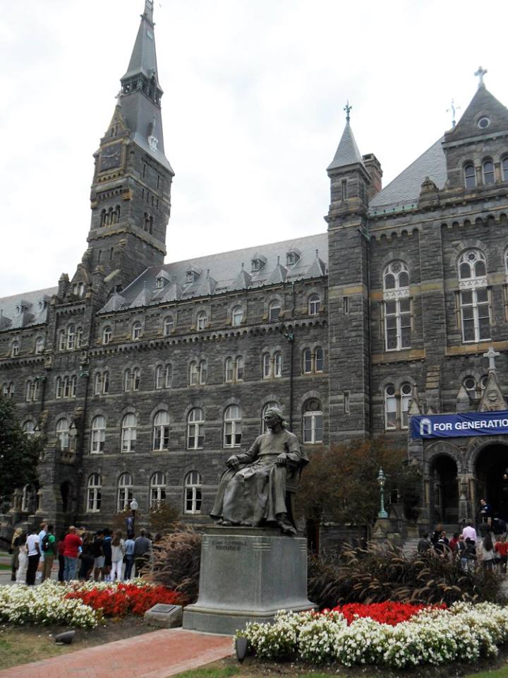 Nel primo pomeriggio subito una visita a Georgetown. Ateneo privato prestigioso, è la più antica università cattolica degli Stati Uniti, fondata nel 1789 dal gesuita Padre John Carroll, la cui statua bronzea si trova appena dopo l’ingresso centrale. Belle le spiccate architetture dell’antico edificio in pietra squadrata, cui fanno da pendant le forme moderne dei nuovi edifici. Strutture sportive, parchi, biblioteche, una cappella e perfino un piccolo cimitero dove riposano i padri gesuiti passati per l’università, s’articolano nella mappa degli edifici destinati all’insegnamento e allo studio. L’ateneo è una piccola città autonoma, dove gli studenti esterni e quelli ammessi dopo rigorosa selezione al Campus interno, circa 15.000, vivono i loro studi in una dimensione di serenità, di benessere, d’efficienza nelle strutture e d’eccellenza nei servizi. E ancora nella qualità dell’insegnamento, che dell’ateneo è il vero prestigio. Tranquilla, questa parte di capitale, perché l’università – che prende il nome dell’antico borgo e poi quartiere -, è contornata tuttora da piccole case monofamiliari dipinte in colori pastello, protette dal vincolo architettonico che le tutela da invadenze dell’edilizia moderna, che tuttavia a Washington ha i contorni della moderazione e della gradevolezza delle forme.