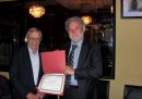 La riunione va volgendo al termine quando Lucio D’Andrea, quale presidente emerito dell’AMHS – la presidente Maria D’Andrea-Yothers aveva un impegno in NIAF -, inopinatamente mi consegna una pergamena con la nomina a Socio onorario. Sono commosso per questo gesto di considerazione, ancor più sorpreso nell’apprendere che è stato finora riservato solo a cinque personalità tra le quali il Giudice della Corte Suprema degli Usa Antonin Scalia e l’Ambasciatore Luigi Einaudi, già Segretario generale dell’Organizzazione degli Stati Americani presso le Nazioni Unite. Esprimo la mia gratitudine con un intervento che sottolinea il valore e il contributo dell’emigrazione italiana nella scrittura della grande Storia del nostro Paese. Non sempre questo viene affermato, come si dovrebbe, anche per la superficiale conoscenza che si ha della storia delle migrazioni italiane nel mondo, talvolta infarcita di stereotipi. Ancor più grave questo limite quando si riscontra presso la classe politica. Il mio ringraziamento va ai nostri emigrati non solo per il contributo reso alla rinascita dell’Italia, specie nel secondo dopoguerra, ma sopra tutto per aver testimoniato, con le loro capacità e il loro talento, le vere qualità degli italiani in Paesi dove talvolta permangono diffidenze e pregiudizi verso l’Italia. Qual è davvero l’Italia, allora, la si conosce proprio attraverso le testimonianze di vita degli 80 milioni d’italiani che vivono nel mondo, l’altra Italia che dovrebbe essere conosciuta e riconosciuta in Patria. Quindi la mia gratitudine, espressa in forma comunitaria in ragione d’un lungo servizio che ho reso nelle istituzioni. Dunque, una bella serata d’amicizia e d’emozioni condivise, nella comunanza delle nostre radici d’origine e culturali.