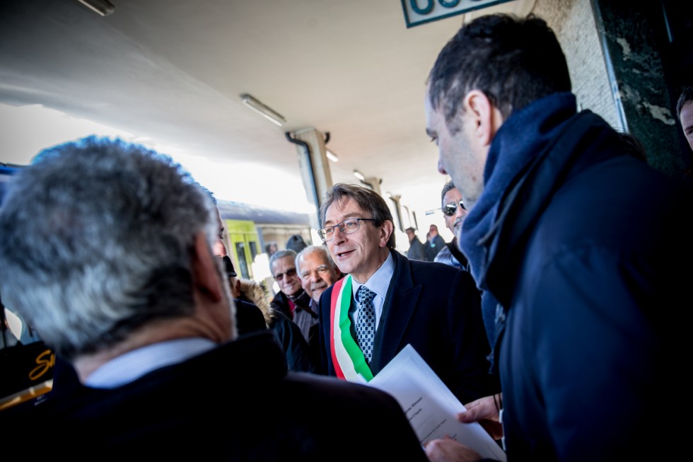 Mayor of L’Aquila, Massimo Cialente during the inauguration of the new train “Swing” of the line between L’Aquila and Sulmona, on January 26, 2016, in L’Aquila, Italy. (Photo by Manuel Romano/NurPhoto)