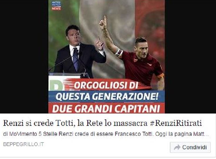 “Renzi crede di essere Francesco Totti. Oggi la pagina Matteo Renzi News (che fa parte della [...]