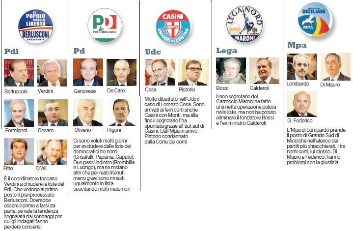 Impresentabili: 17 i nomi, 5 per centro-sinistra e 12 per centro-destra